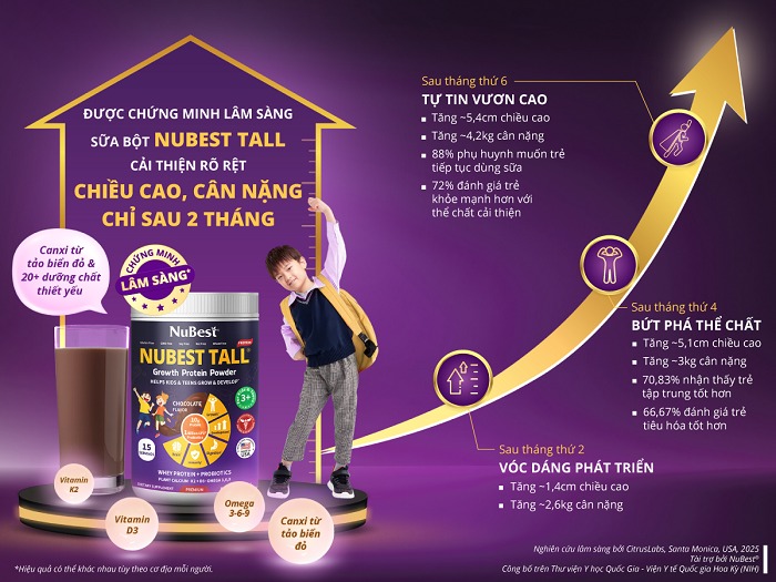 Với sự phát triển của xã hội và nhu cầu ngày càng cao về sản phẩm bổ sung dinh dưỡng cho trẻ, các bậc phụ huynh đang đối mặt với nhiều lựa chọn. Tuy nhiên, để đảm bảo sự phát triển toàn diện cho trẻ, các chuyên gia dinh dưỡng khuyên rằng ba mẹ nên chọn những sản phẩm đã được chứng minh hiệu quả qua nghiên cứu lâm sàng. Sữa bột NuBest Tall là một trong những lựa chọn đáng tin cậy để hỗ trợ trẻ phát triển chiều cao và bổ sung dinh dưỡng cần thiết.